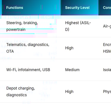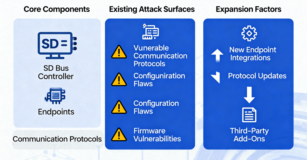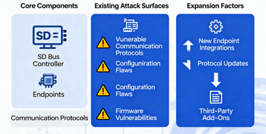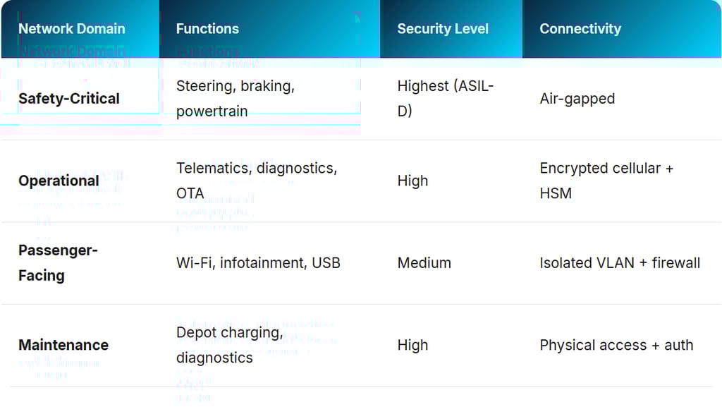 Modern software-defined buses present threat actors with multiple entry points. The increased connectivity creates numerous access points into internal vehicle networks, each presenting multiple software vulnerabilities that adversaries can exploit.